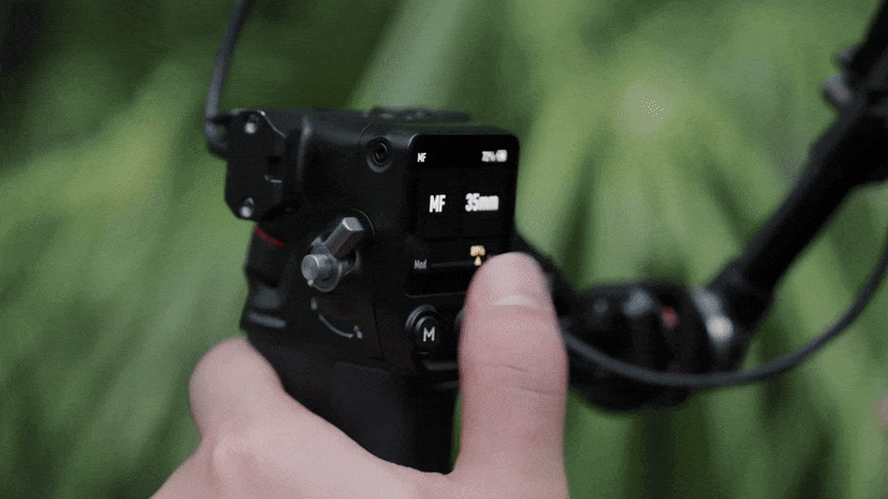 A-B elektronik işaretleme noktaları, uç noktalar ve basamaksız sönümleme ayarı için dokunsal geri bildirim sağlayarak daha doğru odaklama sağlar. Ünite ayrıca kameranızın kaydını Bluetooth üzerinden değiştirmenize de olanak tanır.