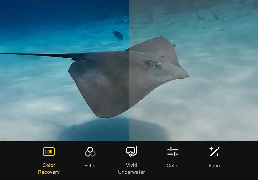 Kılıf olmadan 20 metreye kadar su geçirmez. Dahili renk sıcaklığı sensörü ve su basıncı ölçer ile Osmo Action 6, su altındaki renkleri gerçeğe uygun şekilde sunar ve dalış verilerinizi kaydeder.