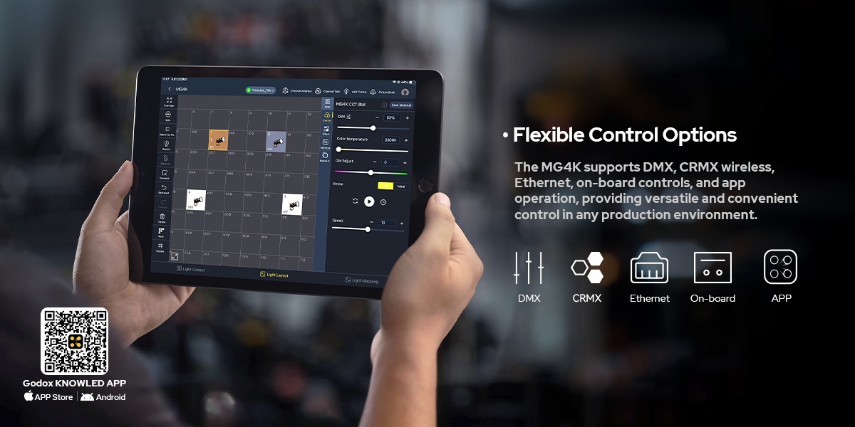 MG4K; DMX, CRMX kablosuz, Ethernet, dahili kontrol ve uygulama ile kontrol seçeneklerini destekleyerek her prodüksiyon ortamında çok yönlü  ve pratik kullanım sunar.