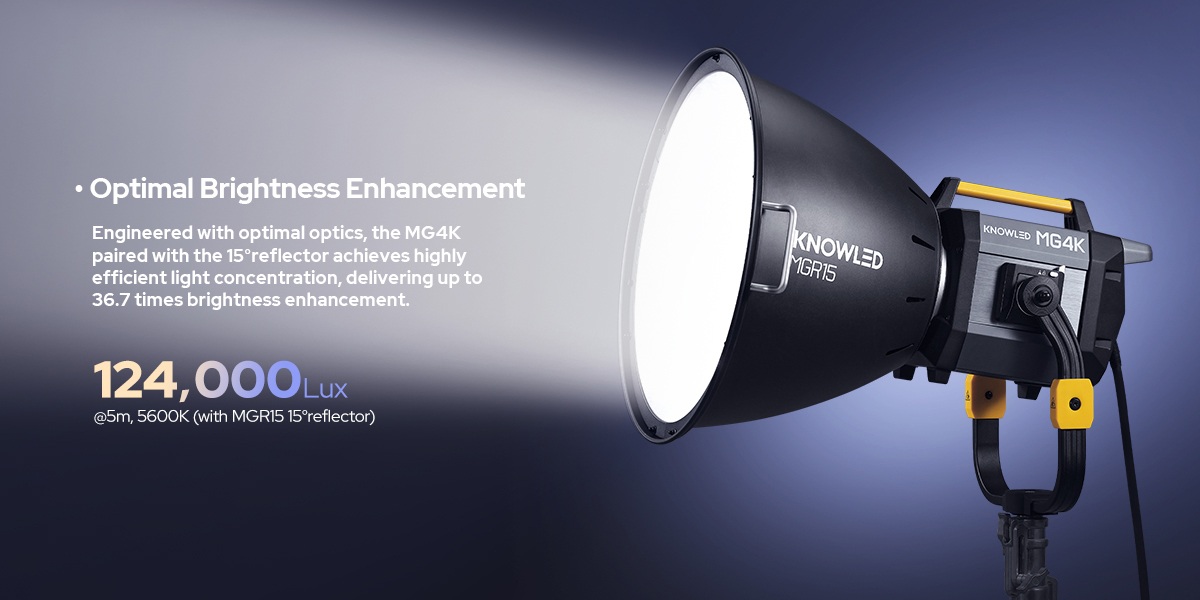 Godox MG4K, gelişmiş ışık motoru sayesinde optik verimliliği maksimize eder. Endüstrinin en küçük ışık çıkış alanına sahip olan bu model, sınıfındaki en yüksek verimliliği, optimum lümen verimini (110 lm/W) ve maksimum parlaklığı sunar.